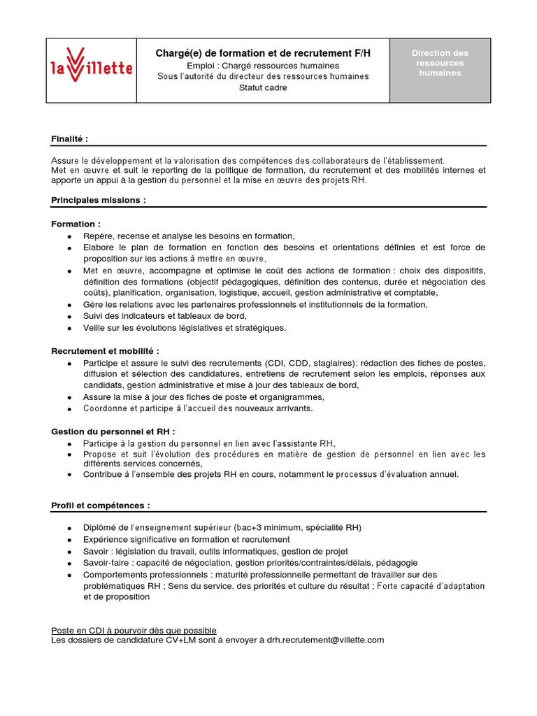 Fiche De Poste Assistante De Formation